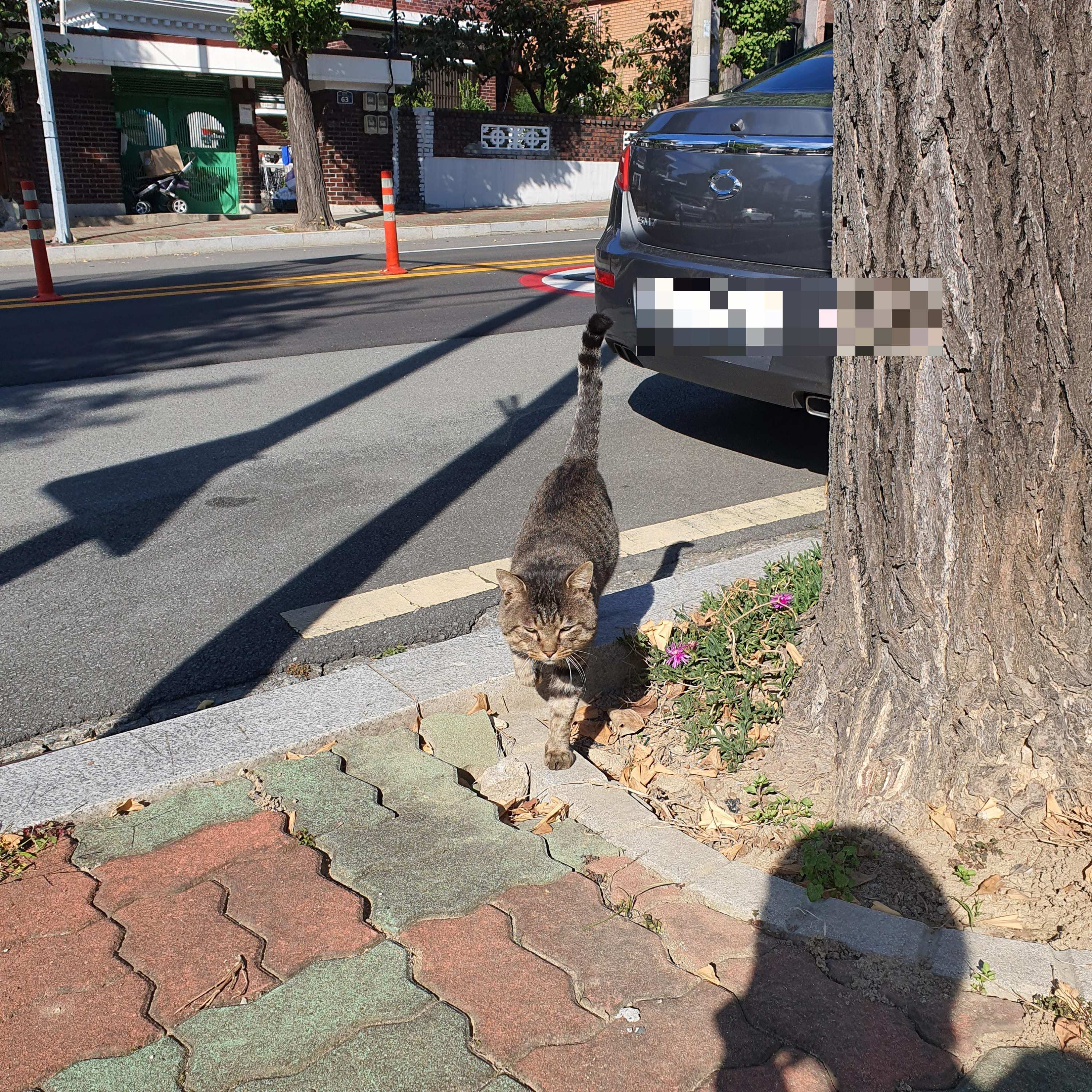 사진 찍으려고 앞에 쭈그려 앉았더니 냅다 꼬리 들고 걸어오시는 고영 슨생님